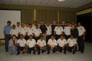 The Guatemalan firefighters were fortunate enough to have the knowledge and experience from 4 firefighters from the states. During the week they learned about HazMat - ID, Recognition, and Scenario. Decontamination, Incident Management Systems (IMS), Critical Incident Stress Debrief (CISO), and participated in a large scale Mass Casualty Incident (MCI). Throughout the week in Zacapa, there were anywhere from 28-54 Bomberos at any one training. To end the week in Zacapa, there was an award ceremony where certificates and prizes were given based upon participation. All Bomberos that have had the opportunity to train in the US were awarded with a "Hearts on Fire" pin to wear on their uniforms.